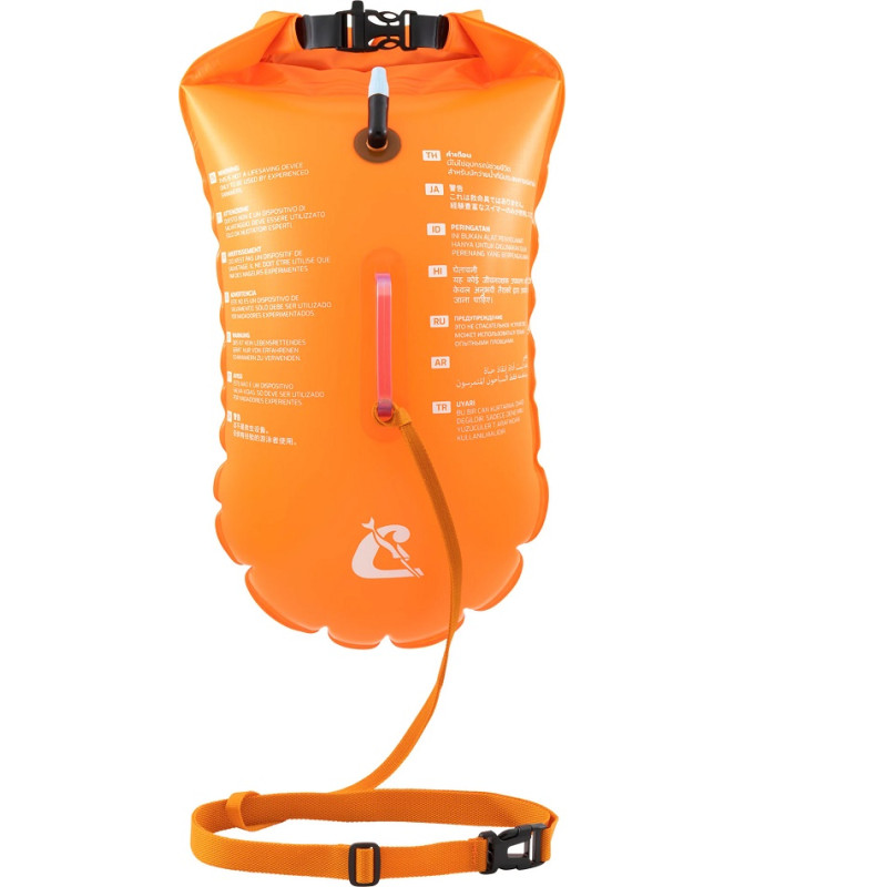 Надувний плавальний буй Cressi Sub Glide - призначений для плавців, любителів підводного плавання з маскою та трубкою, а також для тріатлоністів, яким необхідна хороша видимість та безпека у відкритій воді. Його флуоресцентний помаранчевий колір забезпечує хорошу видимість плавця для човнів, рятувальників та інших користувачів води, підвищуючи безпеку під час тренувань або відпочинку. Виготовлений з ламінованого ПВХ з термозварними швами, буй водонепроникний, міцний і довговічний навіть при частому використанні в солоній воді.