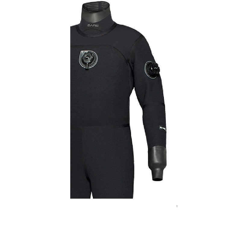 Сухий гідрокостюм Bare D 6 HD Pro Dry чорний виробництва Bare майже повністю аналогічний моделі CD4 ProDry, але виконаний з компресійного неопрена товщиною 6 мм, металізованого зсередини і покритого зовні нейлоном Diamont-Tuff. При виробництві костюма використовується унікальна технологія з'єднання деталей костюма NST (No Stitch Technology - безшовна технологія). Для підвищення довговічності ця модель має зносостійкі наколінники. Боти можуть бути виконані з 7 мм вулканізованого неопрена або з компресійного неопрена (Soft Boot). Обертається клапан поддува дозволяє використовувати лівосторонній або правосторонній підключення. Низькопрофільний травляче-запобіжний клапан виконаний регульованим.