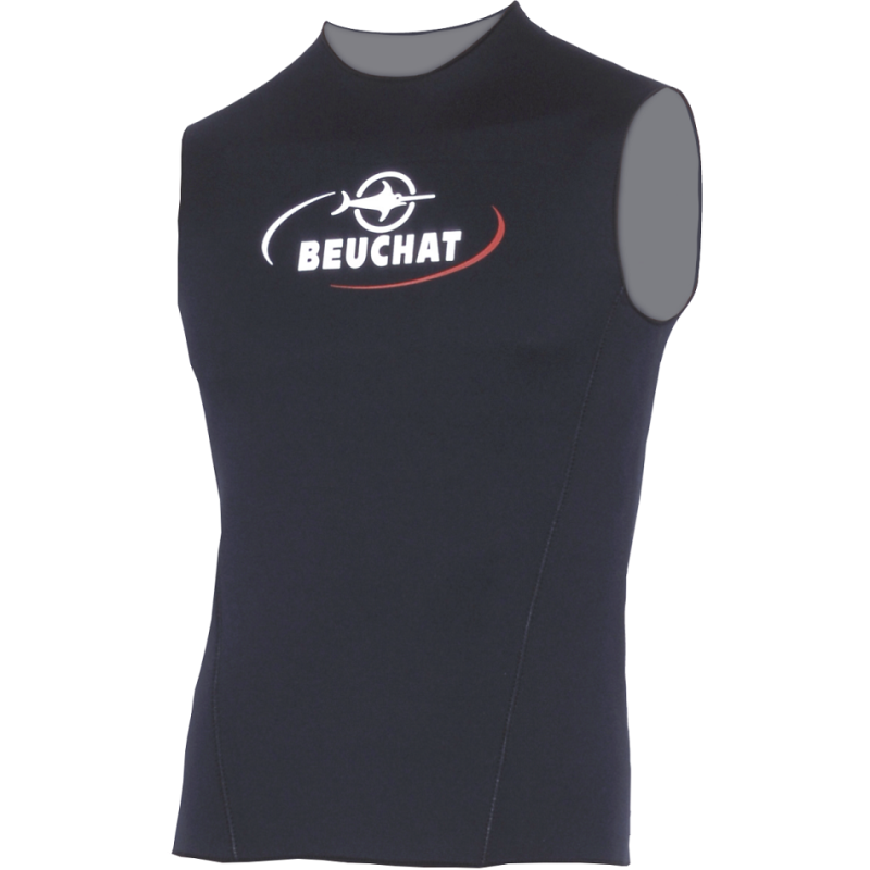 Майка Beuchat Vest Man 2,5mm чорна це неопренова жилетка призначена для утеплення при зануреннях в холодну воду. Як правило одягається під костюм. Основна частина товщиною 2,5 мм неопрена. В області шиї зовнішня частина виконана з гладкого неопрену для кращого прилягання шийного обтюратора гідрокостюма. Кількість потрапляючої води різко зменшується і досягається більш значні показники по теплоізоляції.