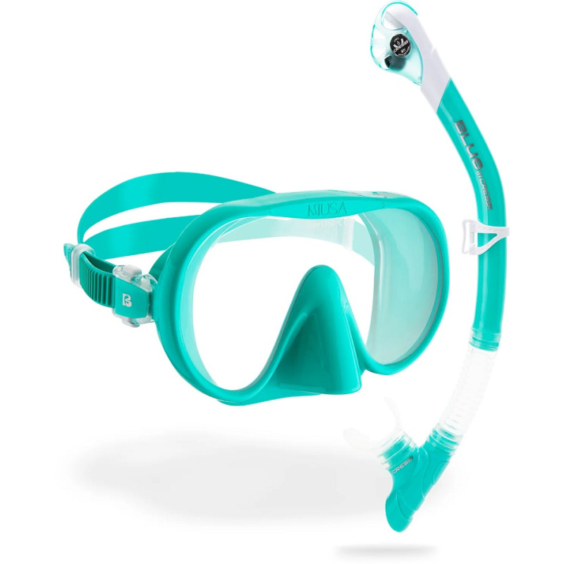 Набір Cressi Sub MUSA + SCILLA бірюзовий складається з двоклапанної трубки та двоскляної маски з ілюмінатором, яка виконана із загартованого скла, що надає високу зносостійкість та достатню механічну міцність. Фланець та обойма маски виготовлені з м'якого силікону. Фіксатор натягу потиличного ремінця спрощений. Також є фасонний виступ для носа. Низькопрофільний дизайн трубки виключає потрапляння води під час занурення і забезпечує надзвичайну легкість дихання під час плавання на поверхні. Регульоване кріплення допомагає зафіксувати трубку в потрібному положенні.