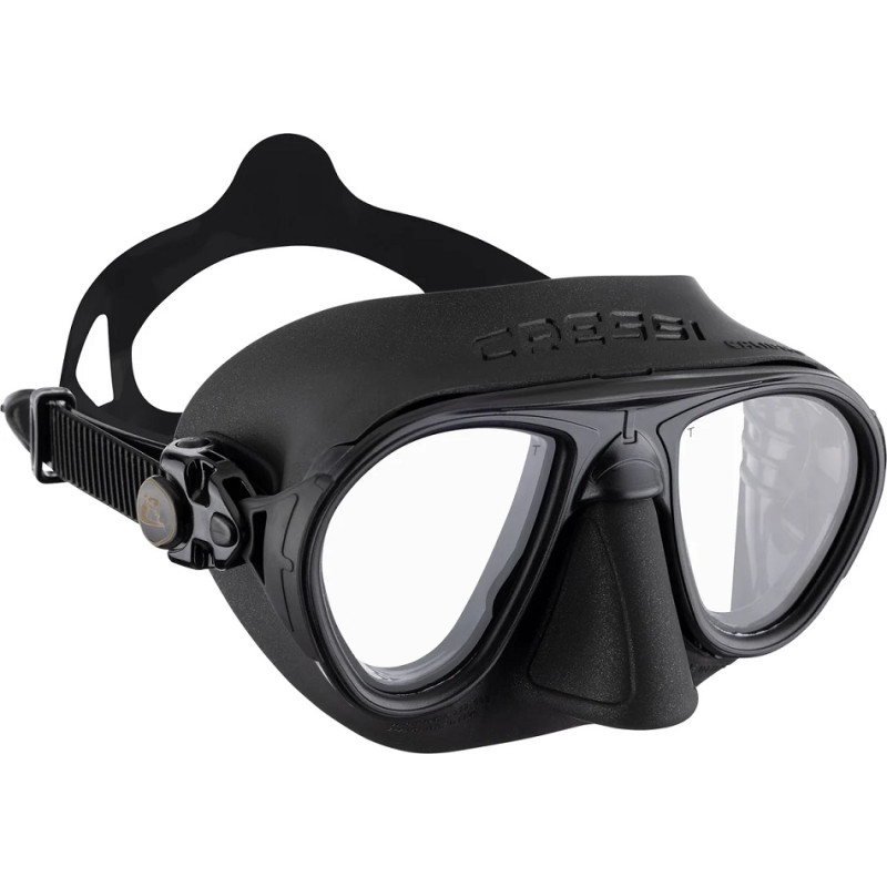 Маска Cressi Sub Calibro чорна спроектований для просунутих фрідайверов і підводних мисливців. Обтюрація спроектована таким чином, щоб максимально зливатися з контурами обличчя. Бічні ребра жорсткості дозволяють більш рівномірно распреділити тиск по всьому колу обтюратора. Мікрометрична регулювання ремінця дозволяє з максимальним комфортом відрегулювати його натяг. Система антізапотіванія Fog Stop перешкоджає запотіванню маски.