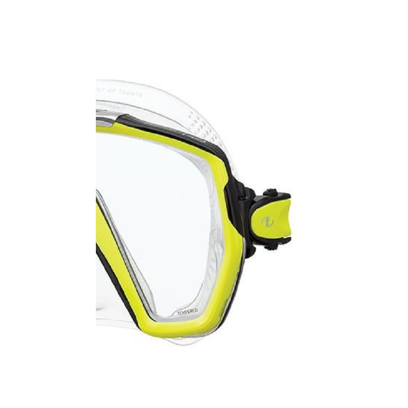 Маска має систему кріплення рухомих пряжок 180 Buckle System, що дозволяє швидко і зручно налаштовувати положення маски навіть під водою. Завдяки наявності Quick-Adjust Buckle System можливе плавне регулювання довжини силіконового ремінця, що дозволяє швидко підігнати спорядження під користувача. Конструкція з однією лінзою з прозорого скла забезпечує широке поле зору при одночасному збереженні відмінної герметичності.