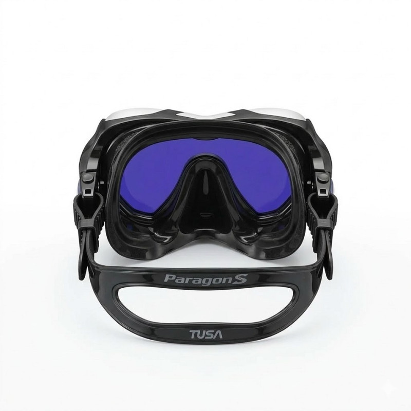 Нова однолінзова маска Tusa PARAGON S чорна з новою посиленою рамкою TUSA TRI-MIX, комплексом технологій Freedom і Fit II, антибліковим захисним покриттям UV 420 і оптичним склом CrystalView забезпечує захист очей і неперевершену чіткість огляду під водою.